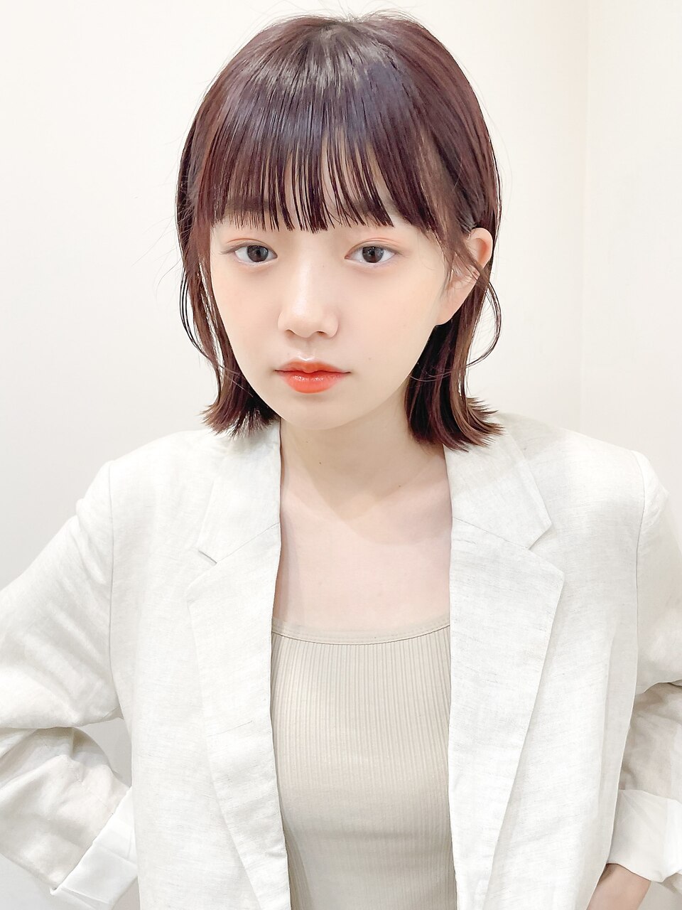 Reina○斜めバングシルキーベージュデザインカラー