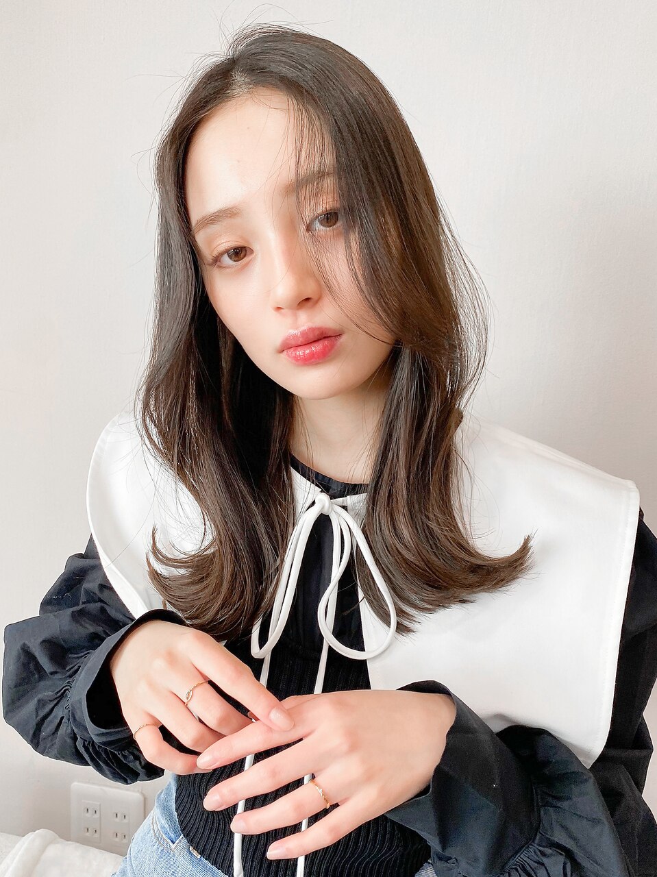 美髪大人かわいいこなれミディネビージュホワイトグレージュ